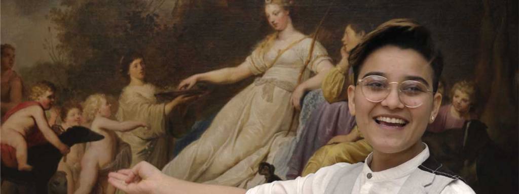 Slowly, the fact that nearly all the paintings are by men becomes apparent to the young women. They struggle with this, all feeling somehow it’s not right but that it must be okay if such a venerable art museum so obviously says it is. One girl says men are better painters and that women’s paintings are too messy. Another says “I don’t know why there are so many breasts in art” and she’s right.