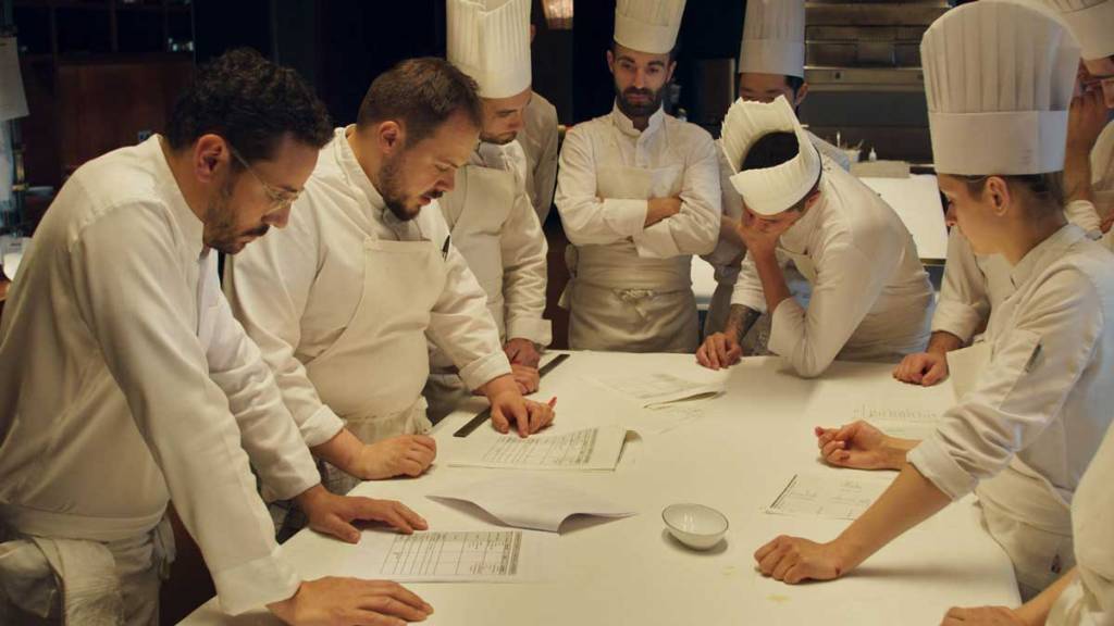 Frederick Wiseman’s technique is just to observe but to take time to tell a thorough and coherent story. We start with produce being bought from a market and then see the painstaking process of putting together a menu and each dish, the mistakes and innovation, the pedantic attention to detail, the patrons who want to talk with Chef Michel or his protege son Cesar. We detour to their goat farm, to a cheese ripening business (and we learn all about moulds), to beehives and vineyards and their quaint luxe hotel.